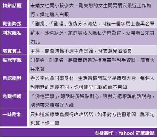 面對不熟的同事或客戶,大家都怕冷場。但因為「找無話題」就狗急跳牆,只會讓情況越來越糟。尤其在公開場合問一位未婚同事:「小孩最近好嗎?」或想關心發胖同事,「難道懷孕了?」惹惱對方自己也難下台。奉勸網友:如果真的不熟就別裝熟了。