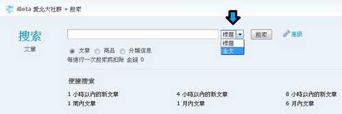 在搜尋網頁中,選擇 [全文] 即可針對文章內的關鍵字搜尋喔!