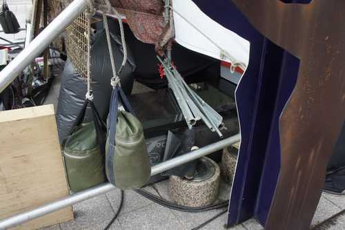 今天在梅街舉辦的活動,盡然把最漂亮的藝術品用繩子綁起來,內部也撐起好幾個鐵架,如此對待公共藝術品看了真叫人痛心,真搞不懂主辦單位之一的耶魯與劍橋管委會,怎麼會同意廠商如此破壞藝術品行為發生呢?為了滿足一些政客與攤商的個人利益,這個藝術品竟然成了活動下的犧牲品,如果這種活動再多辦幾次的話,相信未來藝術大道的公共藝術品將會被破壞夷盡。