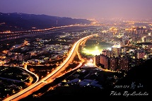 此時天色已完全變暗,遠方的燈火和公路上的光跡織成一幅美麗畫面,令人讚嘆連連。