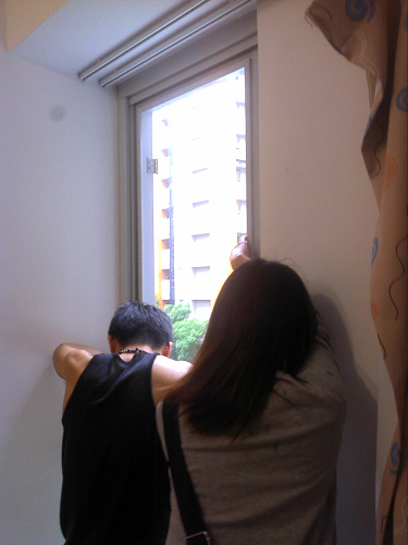 居於之前有安裝過百葉,想把這兒也安裝百葉好了! 但是還有光線的問題!