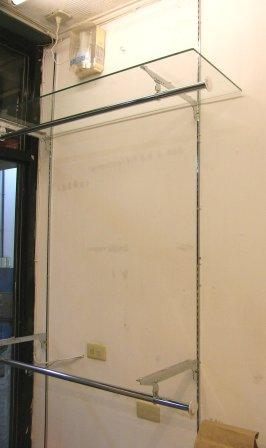 包括不銹鋼層板支撐架六組(長度37cm)、玻璃層板二片(36*120cm)、不銹鋼橫杆三支(39cm、122cm*2)、壁面固定洞洞架四支(210*2支、240*2支)