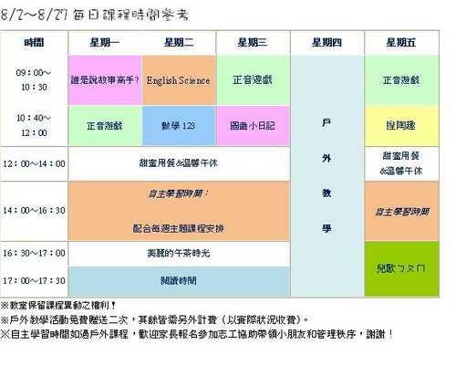 體驗課內容:寫完功課之後的單元主題教學與美語科學課程
