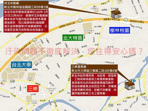 很多居民或網友可能都還搞不清楚三峽瀝青廠或祥玉染整廠的確切位置,特別製作此圖說明,讓大家看得更清楚。