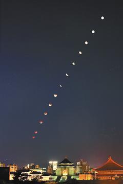 周四清晨,台灣將可看到月全食。圖為二○○七年月全食的連續照片。