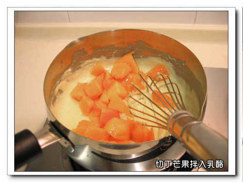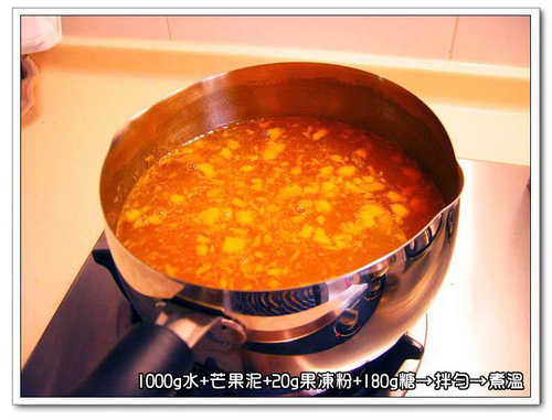 芒果丁+吉利丁片4~5片(有時不加)+半顆檸檬+20G蘭姆酒←不一定要的