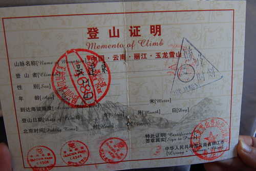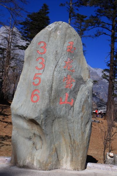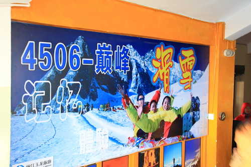 玉龍雪山,海拔4680公尺,今天要來爬這座納西族的心目中的聖山,先在山腳拍一張,待會要從這邊搭纜車上去!