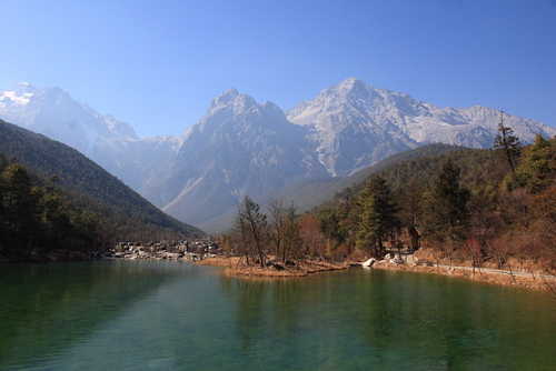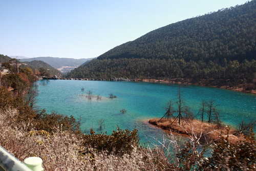 爬完雪山後,往下個景點,藍月谷,他的地形和黃龍有點類似...