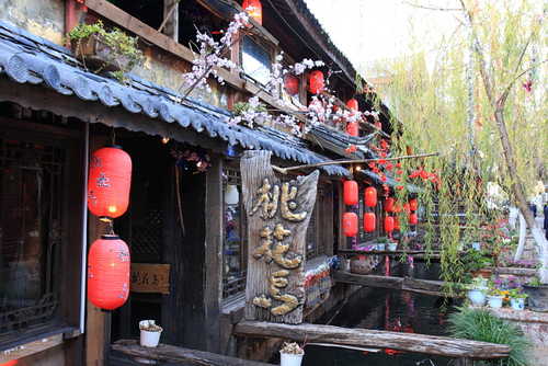 爬完山遊玩谷,又回到大研古城來,白天的大研,人潮就是少了些,這家店叫桃花島,不知道主人是不是黃藥師....