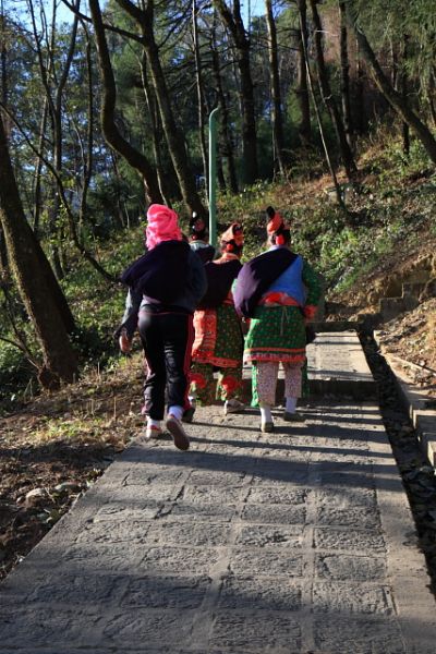 今天的目的地是去蒼山,也就是金庸小說中的點蒼山,不知道還能不能找到點蒼派的高手隱居在深山內,在往纜車的路上,看到了一群白族打扮的大嬸,準備工作,偷偷的拍下她們的背影......