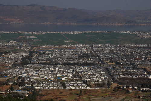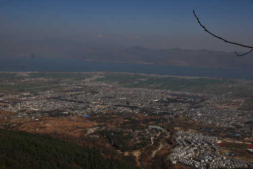 從蒼山可以眺望到整個大理,遠方介於山和陸地之間的藍色湖泊就是著名的洱海!