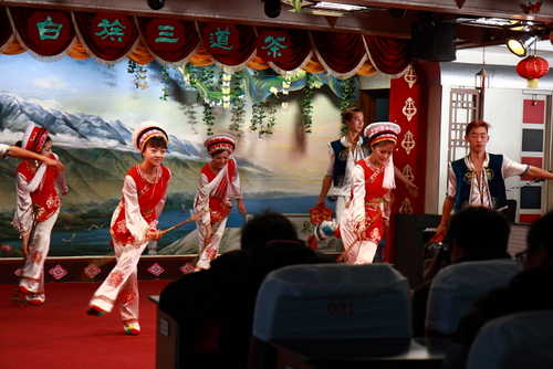 終於等到節目開始,漂亮的白族姑娘,跳著他們傳統的舞蹈...