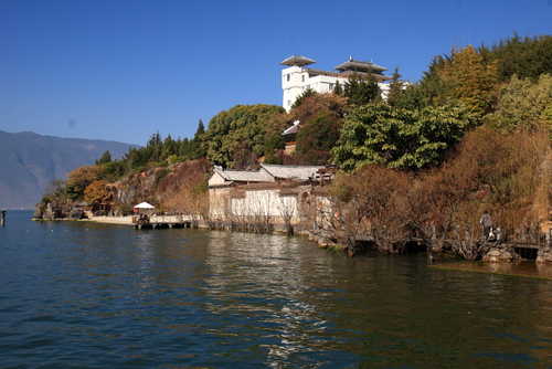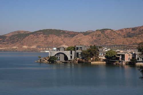 對岸有著半圓形的建築物,是知名的舞蹈家楊麗萍的別墅,小燕子趙薇也有棟別墅在這附近!