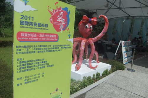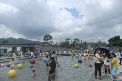後來時間接近傍晚,就進去陶博館內部繞一繞,看看地下一樓的展覽,然後再搭電梯上三樓,然後從三樓晃下來,走出陶博館還聽到廣場有現場音樂演奏,雖然雨還下著,但感覺心情很輕鬆愉悅,暑假的國際陶瓷藝術節從7/15-8/8,陶博館是極推薦溜小孩的好地方,有乾淨的沙堆、適合孩子們玩的乾淨大片池水,還有可以發揮無限創意的各式DIY,在炎炎夏日,帶著孩子們一起輕鬆玩藝術吧!