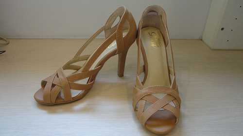 九成新皮革織感鏤空高跟鞋
