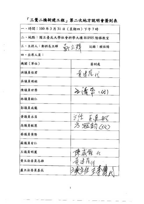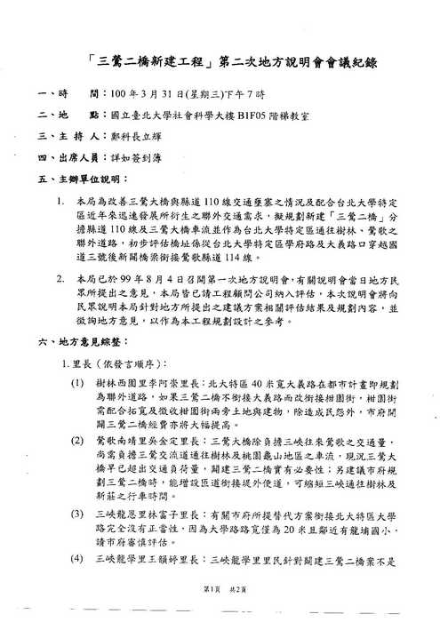 100年3月31日三鶯二橋第二次地方說明會會議紀錄