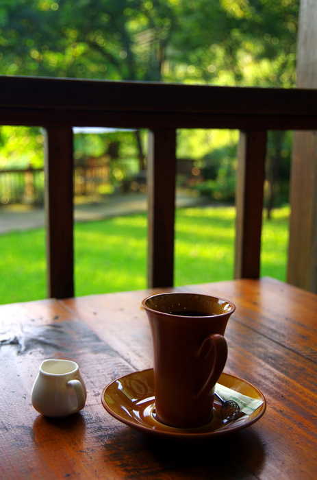後來一聊, 原來是老闆. 銀行業退休, 潛心研習中醫, 因為太太跟女兒很喜歡咖啡與蔬食養生美食, 所以特別開闢了這個地方.