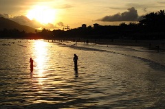亞龍灣的海水及沙灘很乾淨清澈,往海裡30公尺還淹不過一個成人,可看見小魚群在身旁不遠處游來游去