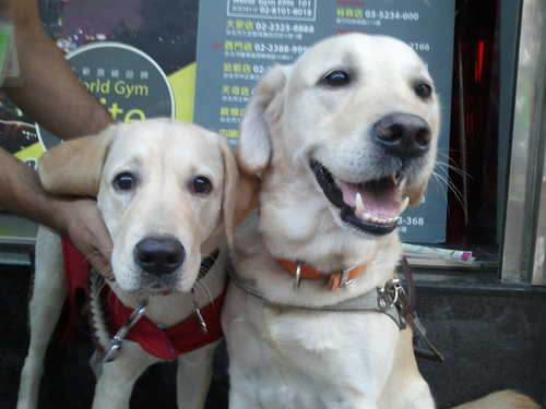 爸爸因為品種優,所以被選為種犬,這樣才能有好的後代,兒子則是快七個月大,正社會化訓練中的導盲犬,原則上每隻狗狗能力都不太一樣,大部份都要到兩歲多才訓練完成開始工作,但是我的前一隻狗狗很優秀,現在才一歲半就在淡水工作了,狗狗交到視障者上手上時,一定是通過層層考核才能上工的,有興趣的話可以上台灣導盲犬協會官網去申請,FB上有更多有關導盲犬的資訊喔!!!