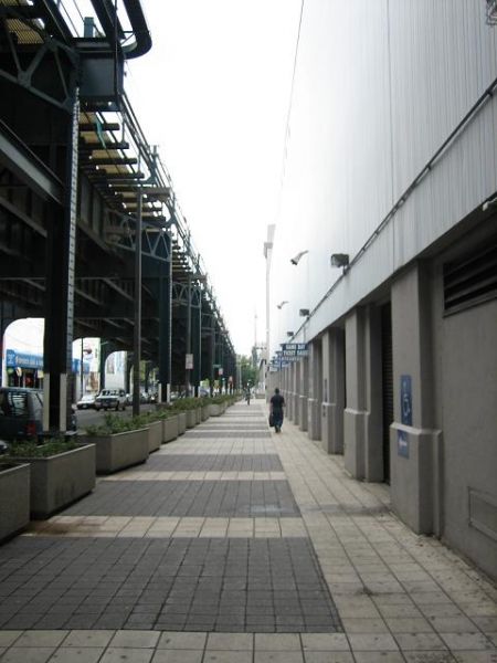 洋基球場周圍 右邊是球場 左上方是紐約的地鐵
