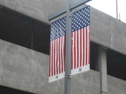 球場旁路燈上的旗幟