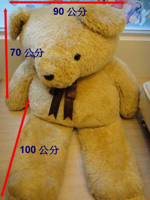 它的大小尺寸約為,高:70公分,寬:90公分,長(屁股~腳底):100公分.