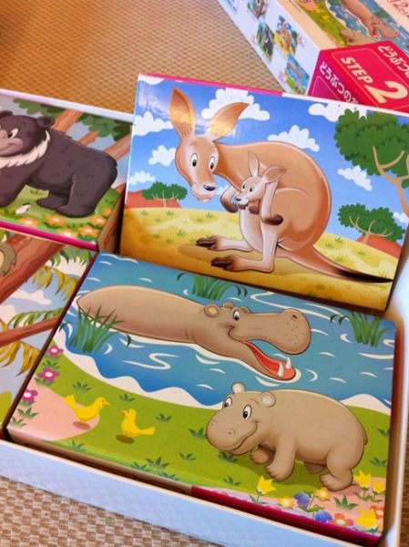 在這組拼圖中,包含有9片、12片、16片、20片,共四組可愛拼圖。每片拼圖完成後的尺寸為:25.7*18.2cm(B5大小)