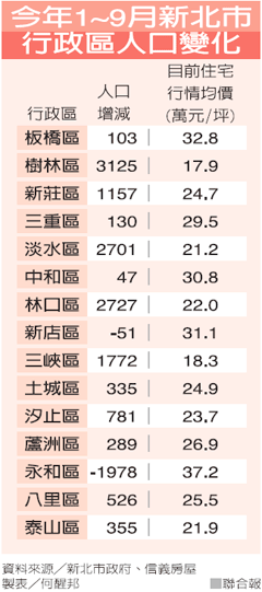 台北市居大不易,民眾紛往新北市「移民」,房仲業者調查,新北市第一圈如三重、板橋、永和仍然搶手,不過房價已高,房價較「親民」的林口、三峽與淡水,今年1至9月人口增加逾萬人、戶數增加7000多戶,儼然成為「新移民樂園」。