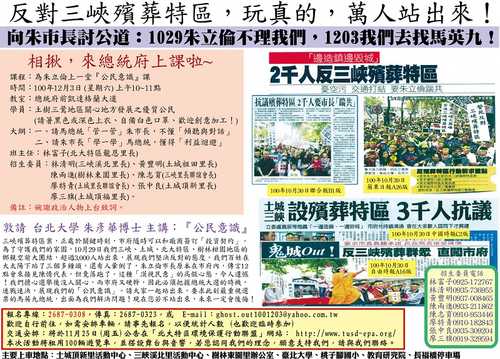 12/03「反對三峽殯葬特區」凱道萬人開講