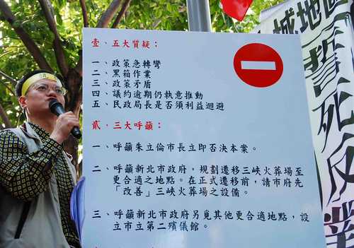 行動劇現場,我們不會讓眾多的葬禮車和孝女白琴離我們這麼近,破壞我們的生活品質。