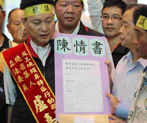 原本聲稱12點會出現的朱立倫市長,只請了心不甘情不願的民政局長,從總召集人手上接過陳情書。