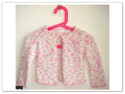 2.二手粉色針織長袖外套--150元(約1A-2A)