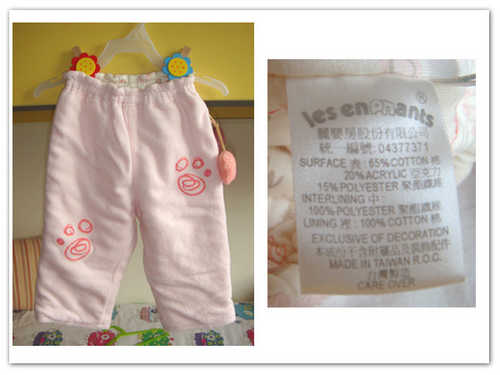 3.麗嬰房LES ENPHANTS二手粉橘保暖又可愛的長褲--200元(約1A-2A)