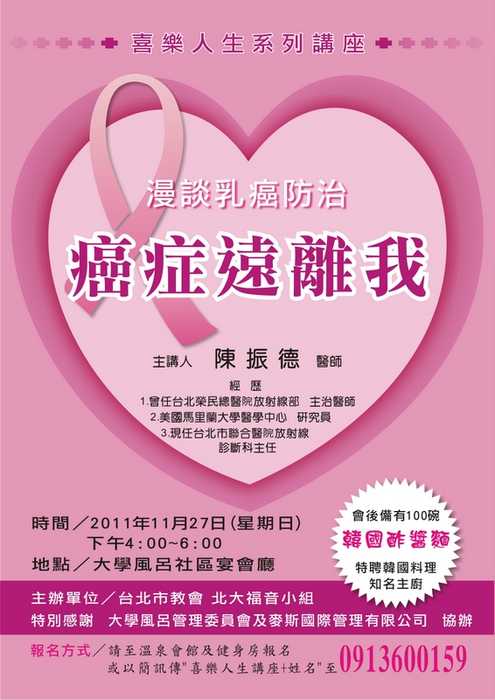 11/27有乳癌防治講座,女性朋友特別需要,照顧您的另一半