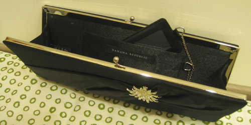 未使用過的BANANA REPUBLIC黑色緞面手拿包, 內附小鏡子(見圖二).