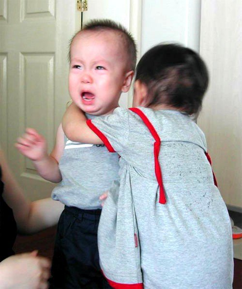 5歲的男孩親了同歲的女孩一下,女孩天真地說:你好像耍流氓哦!你可要負責哦,將來一定要娶我哦!男孩被女孩逼著拉鉤發誓才算完。