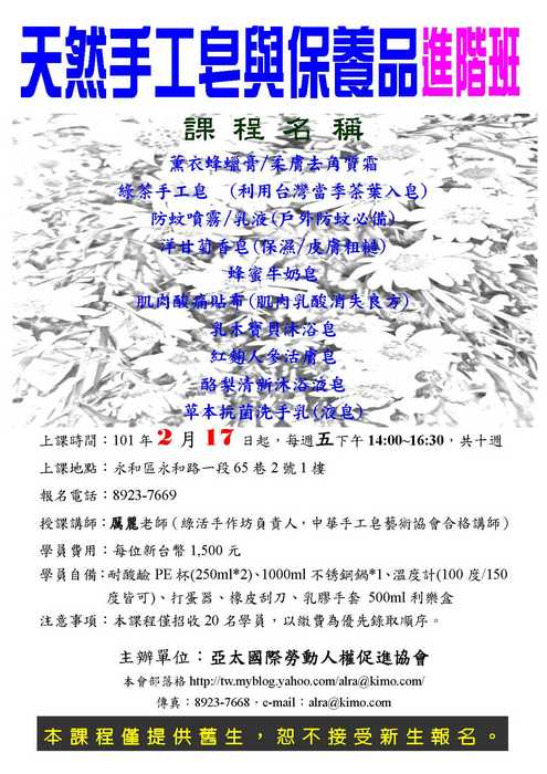 進階課程是以舊生為主喔, 希望新生先上完前段的課程 就能享受後段的課程喔