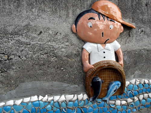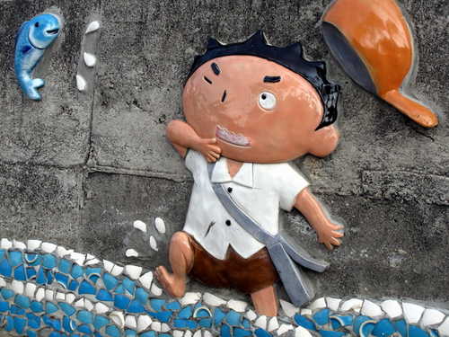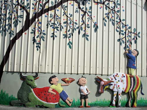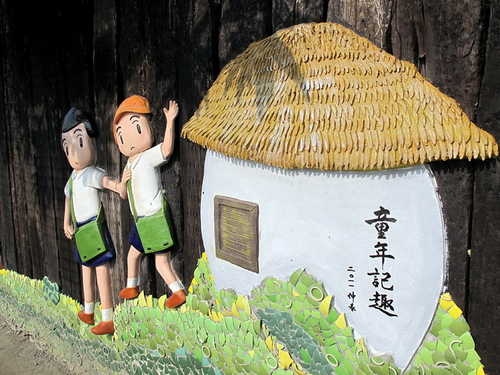 寒風中迎著冬陽,腳踏鐵騎沿著鐵道悠然穿梭於社區巷弄。清淨樸素的村舍有著與世無爭的淡然氛圍,交趾剪黏藝術在社區轉角處、圍牆上隨處可見,陶板製作的可愛人物富饒童趣,為農村景觀帶來活潑生氣,長天宮的神明日日夜夜守護著村民的平安健康。