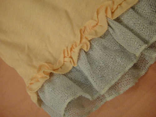 粉色,領口有蕾絲,下擺為銀色荷葉邊,內搭很可愛~