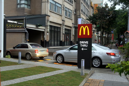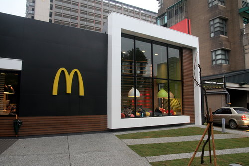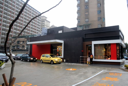 麥當勞內部裝潢現代,用色大膽鮮明,寬敞明亮的落地窗可以看見學成路上的車水馬龍,view實在很不錯~