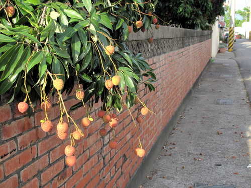 沿途行經幾個小農村,發現荔枝園果實累累,村莊內隨便一戶人家庭院,都能看到荔枝攀牆而出