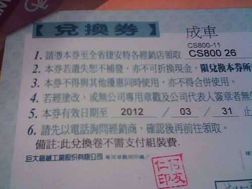 捷安特 CS800 18速 自行車兌換卷.(nt$4500 , 可用智慧手機來交換)