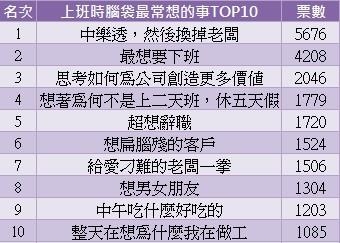 上班時腦袋最常想的事TOP10 總票數:23485