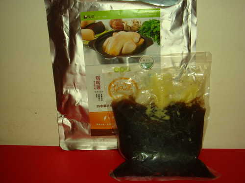 拆開真空包裝.裡頭有兩小袋(各半隻雞)