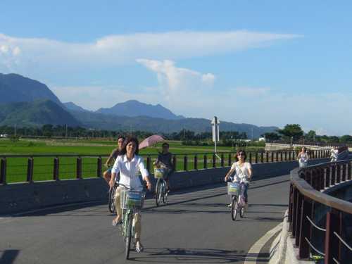 池上環圳自行車道有主線道與支線道,兩者高低落差五公尺,邊騎邊欣賞風光,繞行一圈全程約兩小時