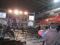 這個舞台設計不是圓形,是藉體育館內部舞台直接排座位的,看起來比較像演唱會的現場,舞台不大,旁邊還有兩個大型螢幕~