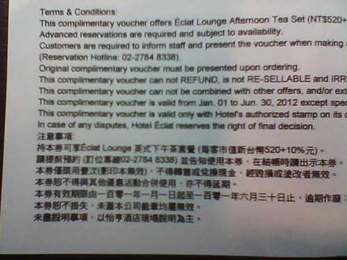 怡亨英式下午茶套餐卷 - 每張售 nt$ 350. ( 免 10% 服務費 , 該卷價值 nt$ 520+10% 服務費)