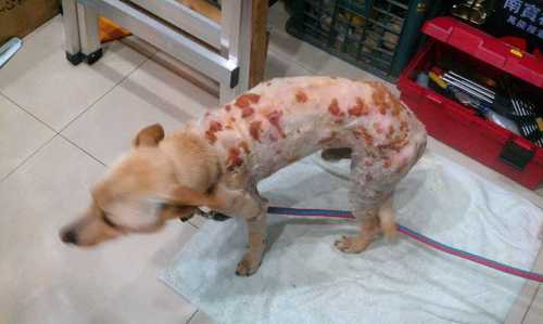 事件發生後我們帶牠去獸醫院檢查~獸醫師也明確告訴我們這是被腐蝕性的藥劑潑撒的!!!