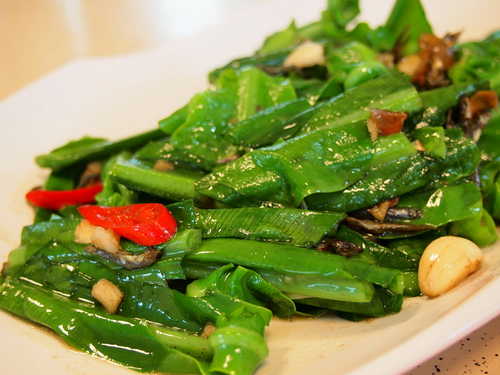 炒山蘇 -- 炒小魚乾及破布子(破布子讓我無法抗拒)