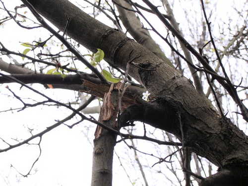 有趣的是,這垂死的殘支竟是整棵梨樹開最多花的部份